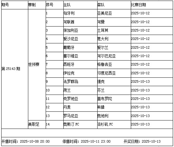 本周末,2026世界杯欧洲区预选赛再燃战火,豪门球队纷纷出击,为世界杯正赛名额而战。传足胜负彩第25143期包含13场世界杯欧预赛与1场美职足,其中,意大利客场出征爱沙尼亚,葡萄牙主场对阵爱尔兰,西班牙和荷兰则分别面对格鲁吉亚和芬兰。